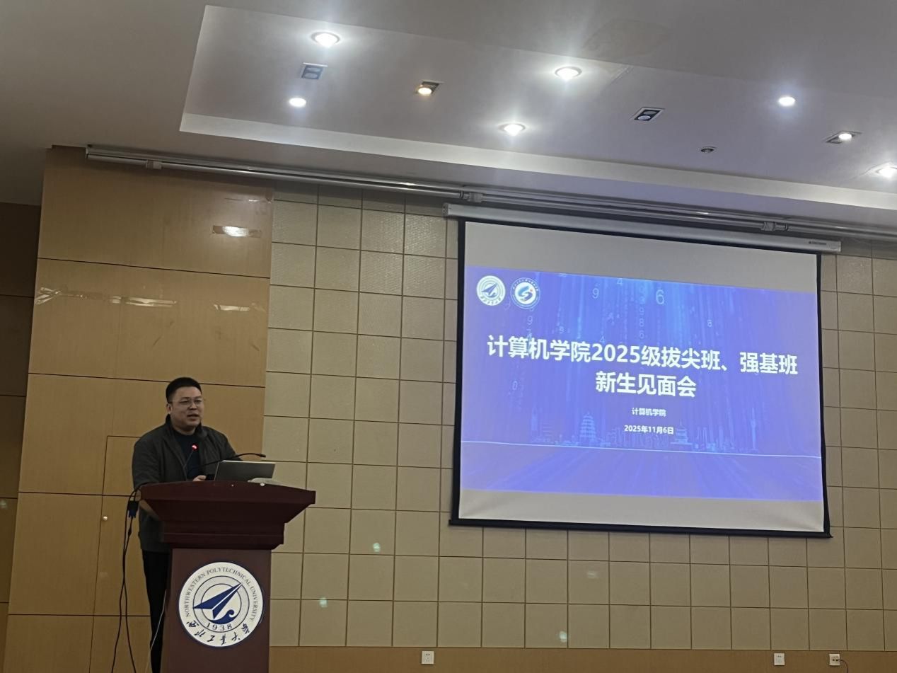 2025年11月6日下午,计算机学院2025级康继昌计算机科学拔尖班、信息与计算科学(智能科学与技术)强基班新生见面会在长安校区计算机学院二楼报告厅顺利举行。学院领导、班主任、优秀学生代表及全体拔尖班、强基班新生齐聚一堂,围绕拔尖创新人才培养、班级建设与发展规划展开深入交流。尚学群院长、赵媛媛副书记等莅临会议并讲话,会议由计算机学院副院长郭斌主持。