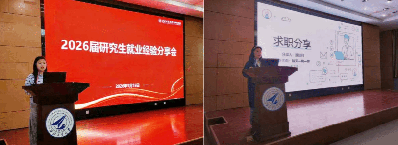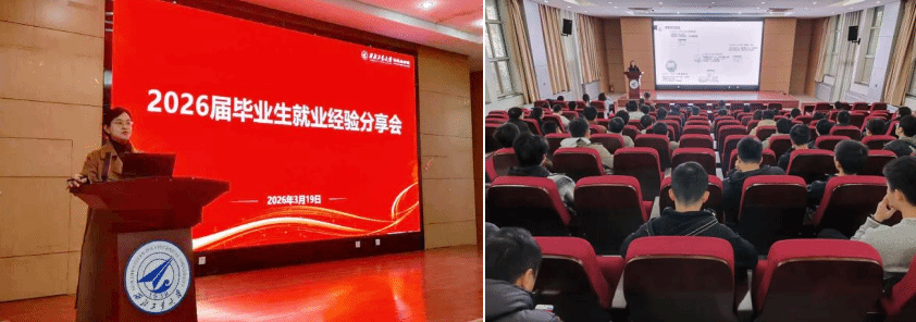 3月19日,计算机学院在新报告厅举办2026届毕业生就业经验分享会,邀请同届硕士毕业生魏佳何、卫嘉丽、李璐池、潘成宇及本科毕业生杨裕平,为学院学生提供求职就业指导。学工主管刘百芳、硕士研究生及本科生100余人参加。会议由学院研究生会执行主席李杨梅主持。